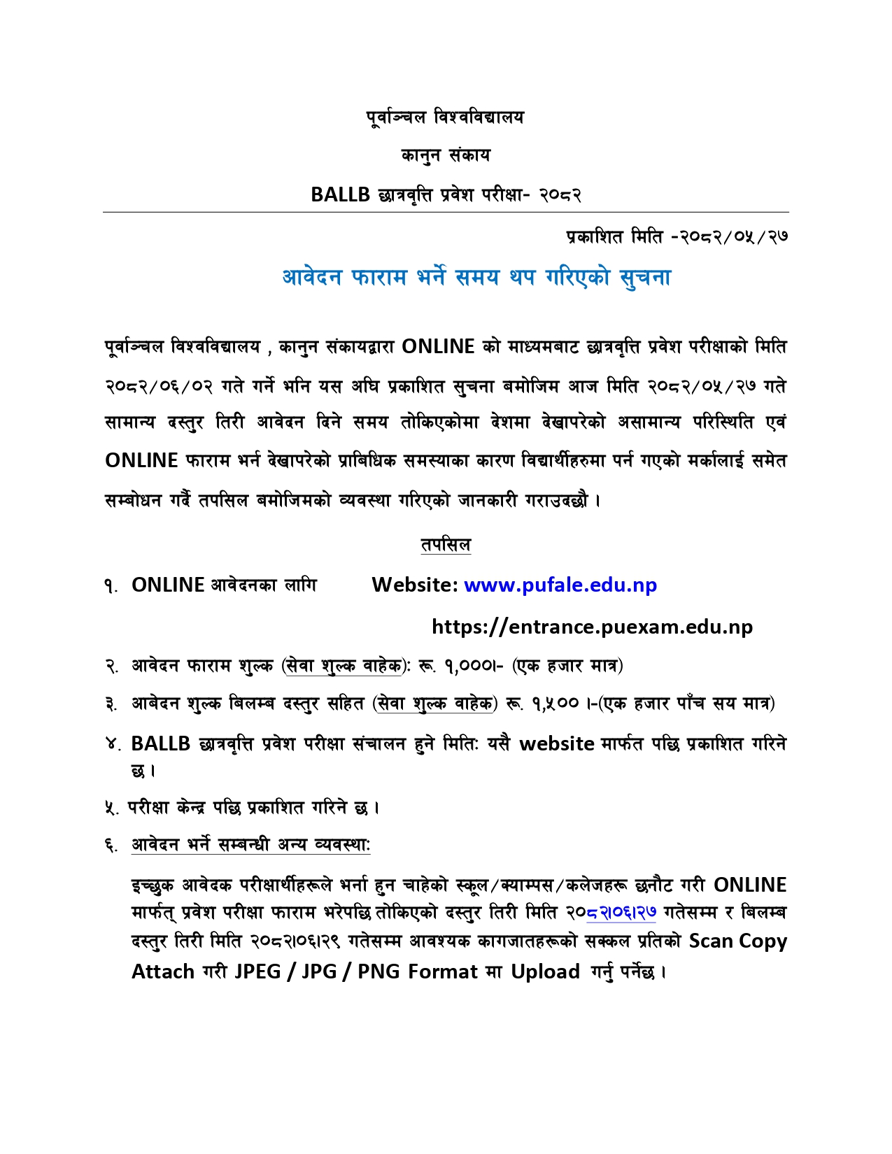 आवेदन फाराम भर्ने समय थप गरिएको सूचना