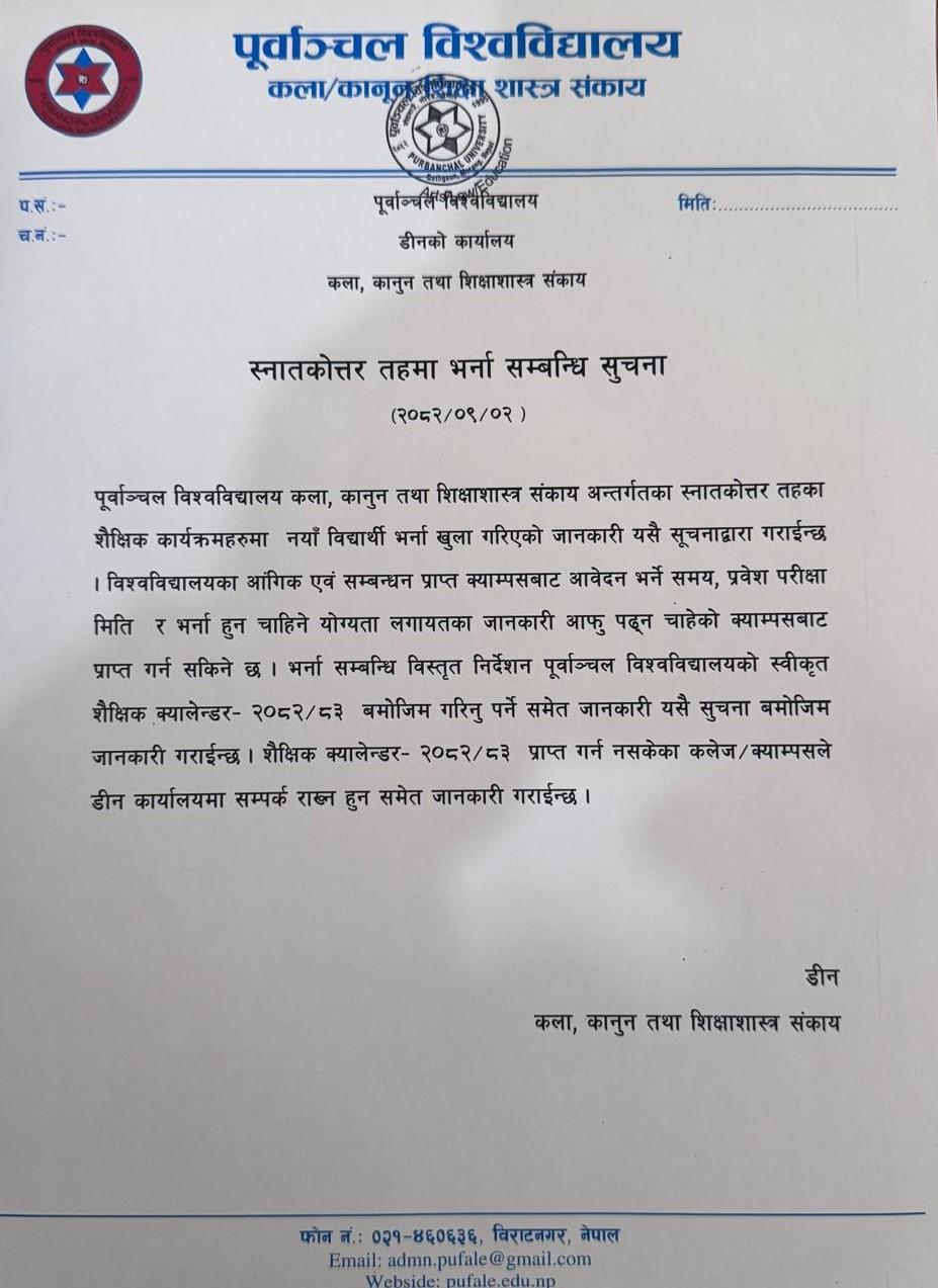 स्नातकोत्तर तहमा भर्ना सम्बन्धि सुचना